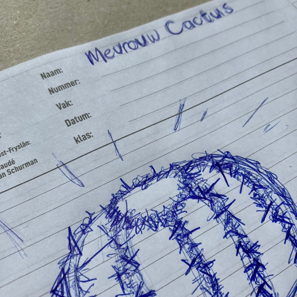 “Ze hebben gewoon mevrouw Cactus uitgenodigd als enige gast op het feestje van een te hard opgeblazen ballon.” Nu werd ik pas echt wakker, alles wat ze gezegd hadden is waar. Het enige dat weinig mensen, zeker geen leerlingen, van mij weten is dat ik op de vlucht sla als er knappende ballonnen in de buurt zijn. Ik wist wat me te doen stond, bijna zonder beweging surveilleerde ik bij het examen. Ieder half uur meldde ik op een zakelijke toon hoeveel tijd er nog over was. Mijn werkdruk was weer op peil, de uitdaging die ik in mijn werk ervoer ook. Pffffff