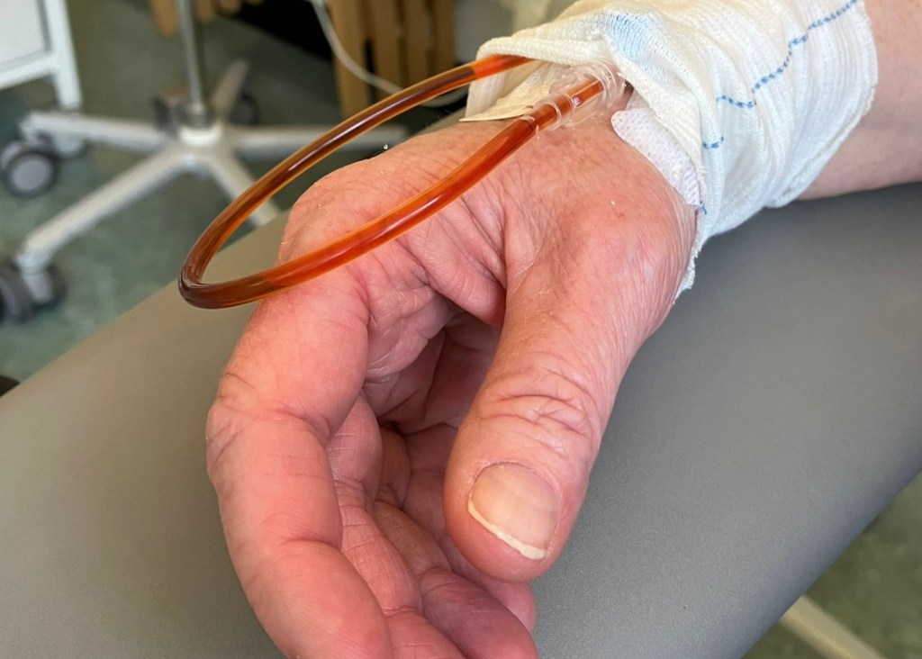 Het is best een beetje onpraktisch om aan zo’n infuus te liggen. Ik was van plan een fijn begin te maken aan één van mijn boekenweekaanwinsten. De term ‘daghospitaal’ beloofde dat ik daar wel even tijd voor zou hebben. Het lezen zonder leesbril lukt niet meer zo goed, maar die had ik natuurlijk meegenomen. Dat mijn bril niet is afgesteld op het lezen van een boek dat op schoot ligt was wel jammer. Lezen met het boek in één hand op de juiste afstand van mijn brilletje hield ik niet zo lang vol. Die andere hand zat vast aan een slangetje en ik was daarvan een beetje teveel onder de indruk om veel te bewegen.
