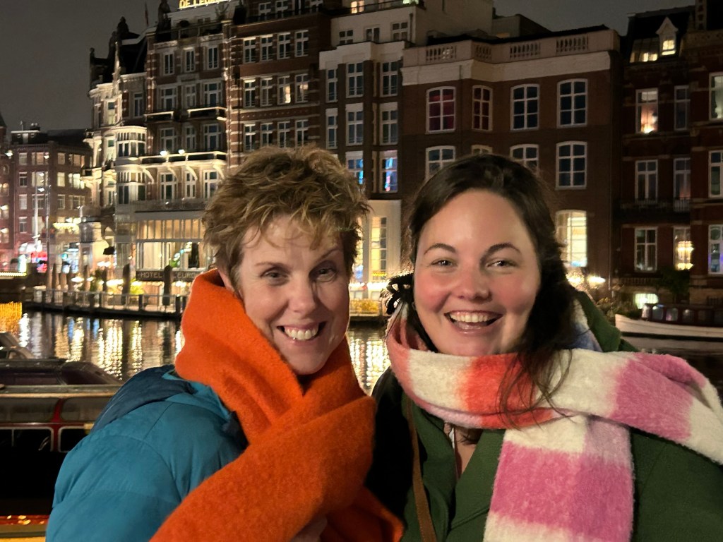 *Afbeelding: Janneke en Heleen op de brug voor De Kleine Komedie nadat ze de voorstelling hebben bezocht van Toon Tellegen en het wisselend Toonkwintet.