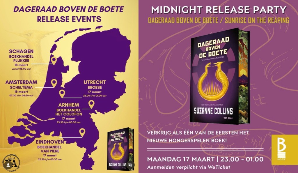 Volgende week maandag ga ik naar de Midnight Release Party in de Utrechtse boekhandel Broese, waar rond middernacht de verkoop van het nieuwste deel in de Hongerspelen-boekenreeks van start gaat: Dageraad boven de boete. Leerlingen uit de derdeklas blijken ook te gaan en n.a.v. ons gezamenlijk enthousiasme appt een aantal klasgenoten hun ouders met de vraag of ze er ook naartoe mogen. Eén van de ouders biedt zelfs aan om ze met de auto heen en weer te rijden vanuit Zeist, want: ‘Voor een boekenfeest maak ik natuurlijk tijd. Zoiets stimuleer ik graag.’ Mooi zo.