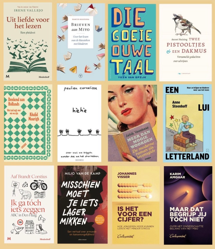 Poeh, wat veel boeken voor (taal)docenten opeens! Deze week raden we maarliefst twaalf titels aan die interessant zijn als je in het onderwijs werkt. We waren zelf ook verbaasd over de hoeveelheid. We hadden al een interessant lijstje voor leerkrachten samengesteld toen er in aanloop naar de boekenweek opeens een stortvloed aan mooie boeken verscheen. Elke uitgeverij wilde wel een boek uitgeven dat bij het boekenweekthema ‘Je moerstaal’ paste. Stuk voor stuk zijn het interessante verhalen die over taal, lezen en/of lesgeven gaan.