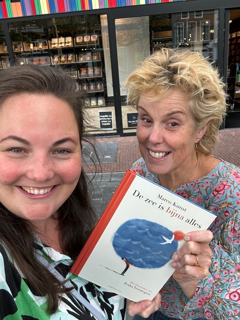 Onze gezamenlijke zomertip is de onlangs verschenen dichtbundel De zee is bijna alles van Marco Kunst en Jeska Verstegen. Marco schreef volgens de achterflap ‘een zinderende dichtbundel vol zee, zand en zingende woorden’. Zijn gedichten gaan over duinen, het tij, storm en het water. Ze gaan over eindeloos, over vroeger en later. De prachtige paginabrede illustraties van Jeska leveren een wijds waterwereldgevoel op, waarin alles mogelijk lijkt te zijn. Is het waterverf, pastelkrijt, een potloodtekening? Gebruikt ze het allemaal door elkaar? We weten het niet precies, maar we krijgen wel meteen zin in schilder- en tekensessies in de duinen van Terschelling met uitzicht op de Noordzee. Wij houden allebei enorm van de zee. Weer of geen weer, het heeft elke dag zijn charme. Onze vakantiebestemmingen zijn dan ook vaak in de buurt van het water. Dat gevoel weten Marco en Jeska goed te vangen met hun dichtbundel De zee is bijna alles.